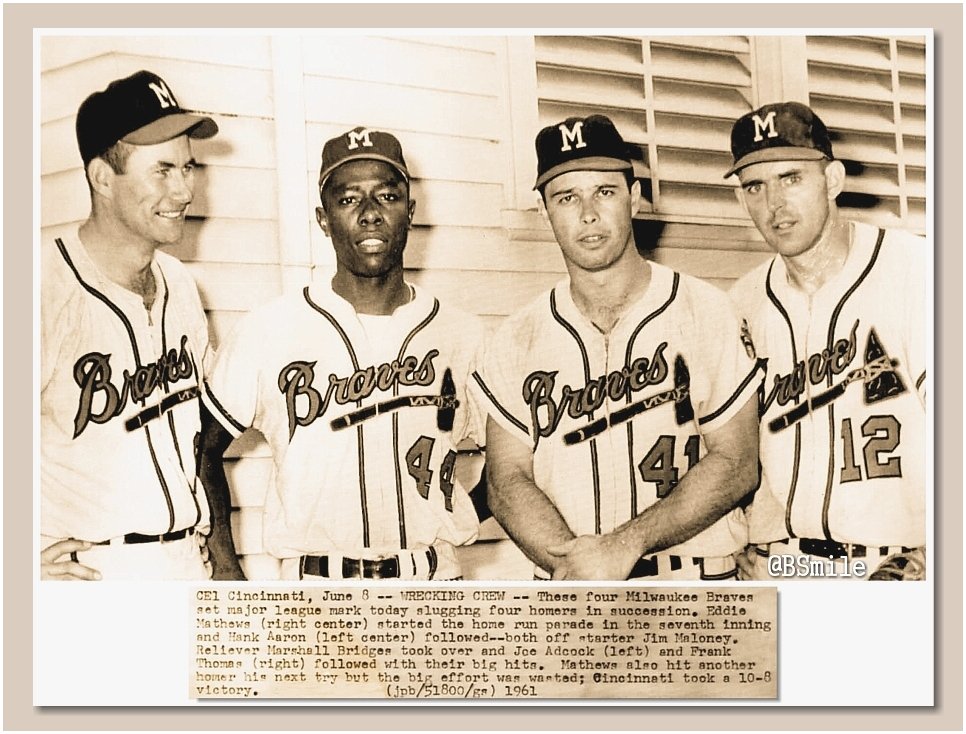 Left to right, eddie mathews, joe torre and hank aaron. Lived a good life, despite the hardships of racism and the many death threats he received as he sought to break. He'd only been in the league a few years, and he didn't have a name, aaron. 1959 topps # 212 fence busters hank aaron/eddie mathews milwaukee braves (baseball card) vg braves. Eddie mathews psa dna coa autograph hand signed perez steele postcard.